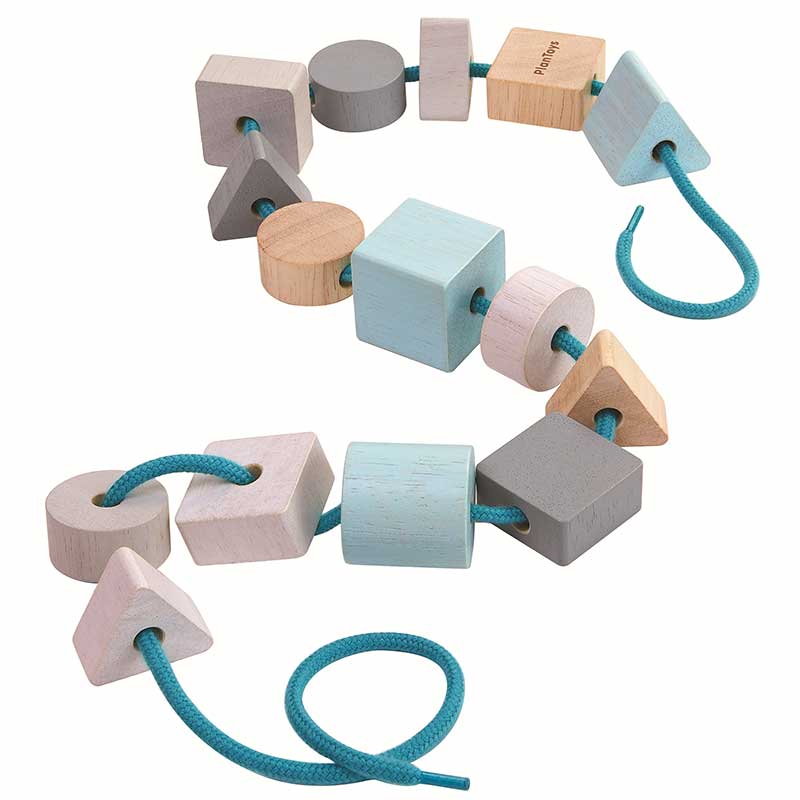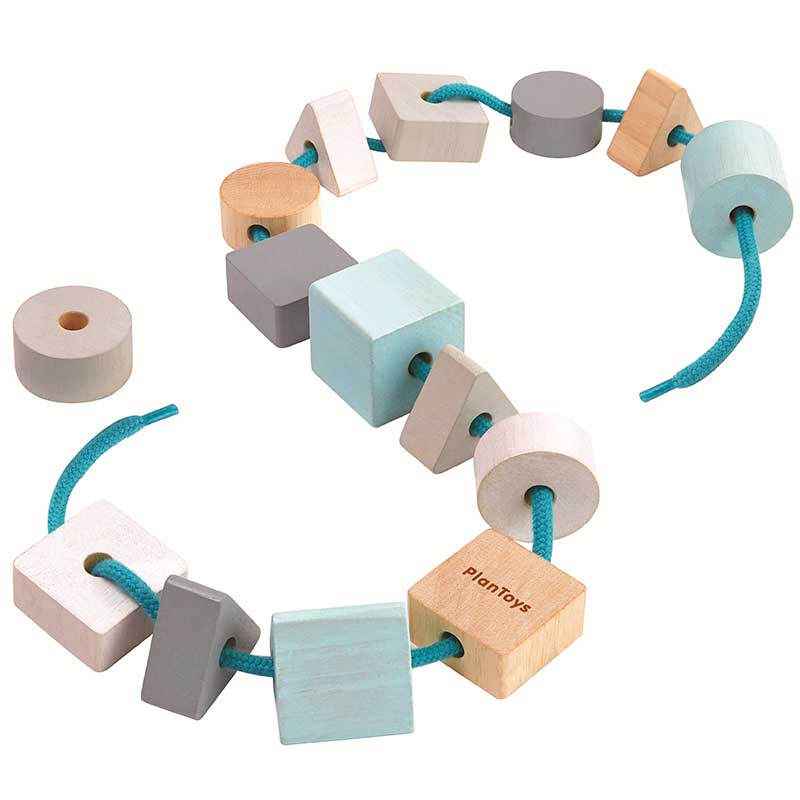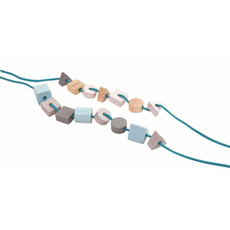 Plan Toys | ξύλινες χάντρες γεωμετρικά σχήματα – Πέρασμα & Λογική