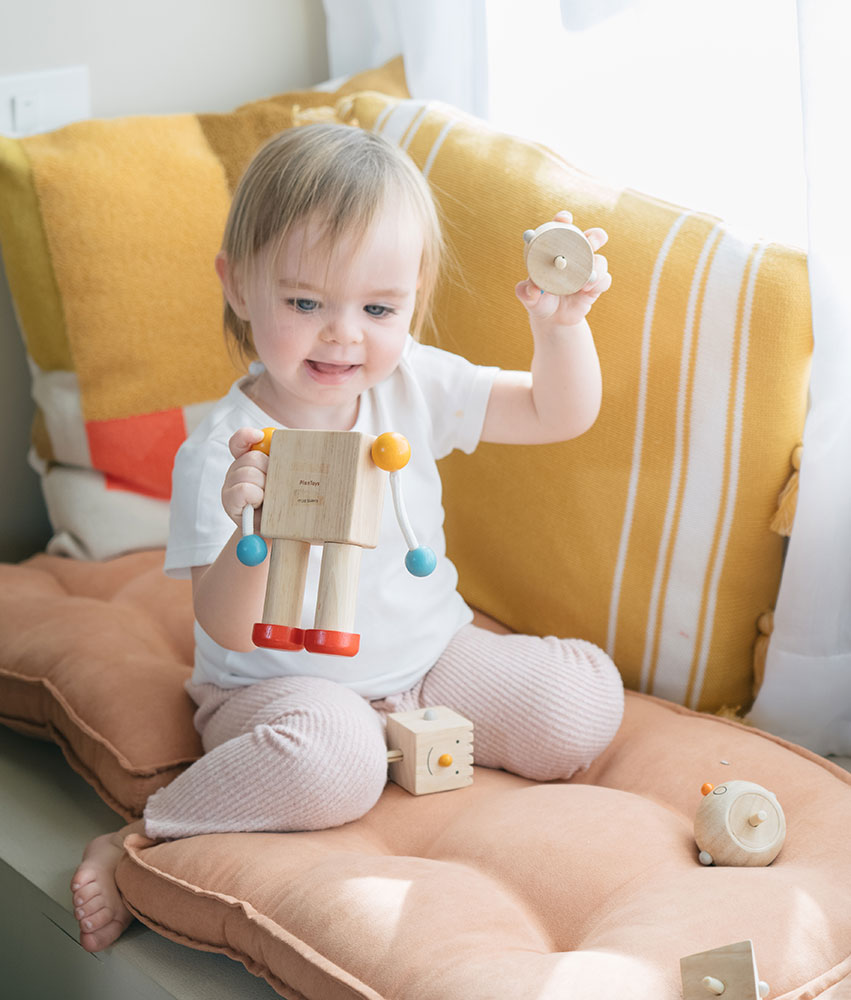Το Plan Toys ξύλινο ρομπότ είναι μια εντυπωσιακά σχεδιασμένη φιγούρα με πολλά κινητά μέρη (κεφάλι, χέρια, πόδια), που επιτρέπουν στο παιδί να του δίνει πολλές διαφορετικές στάσεις. Ως μία από τις δημοφιλέστερες ξύλινες φιγούρες και κούκλες , το ρομπότ είναι ιδανικό για να ταξιδέψει το παιδί σε κόσμους επιστημονικής φαντασίας και να εξασκηθεί στα παιχνίδια μελλοντικής τεχνολογίας